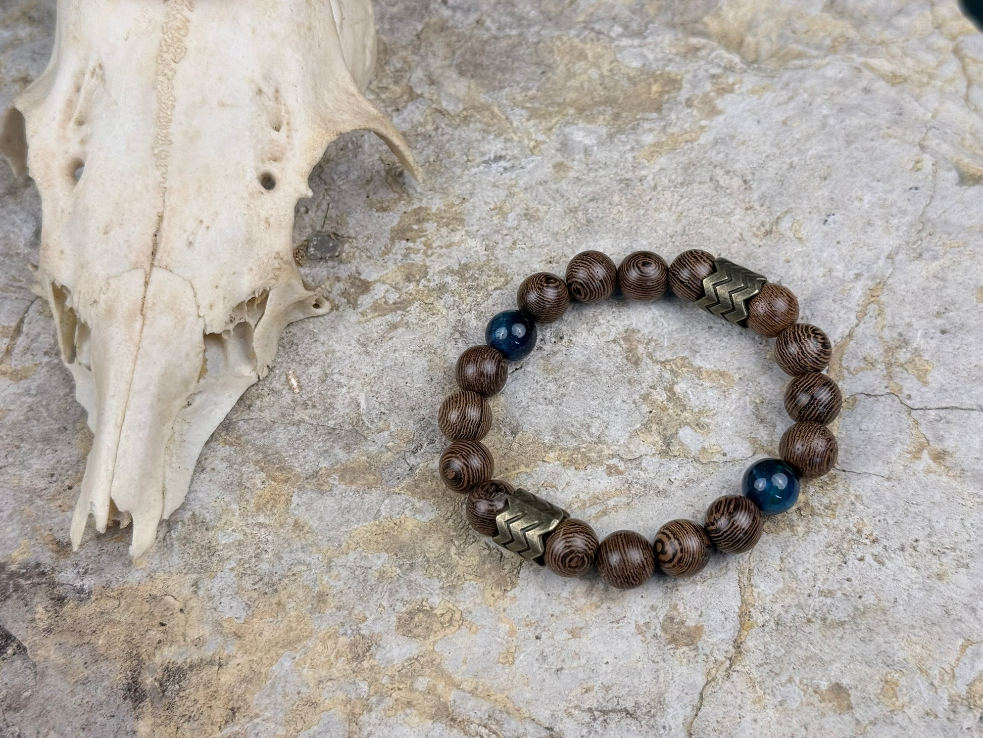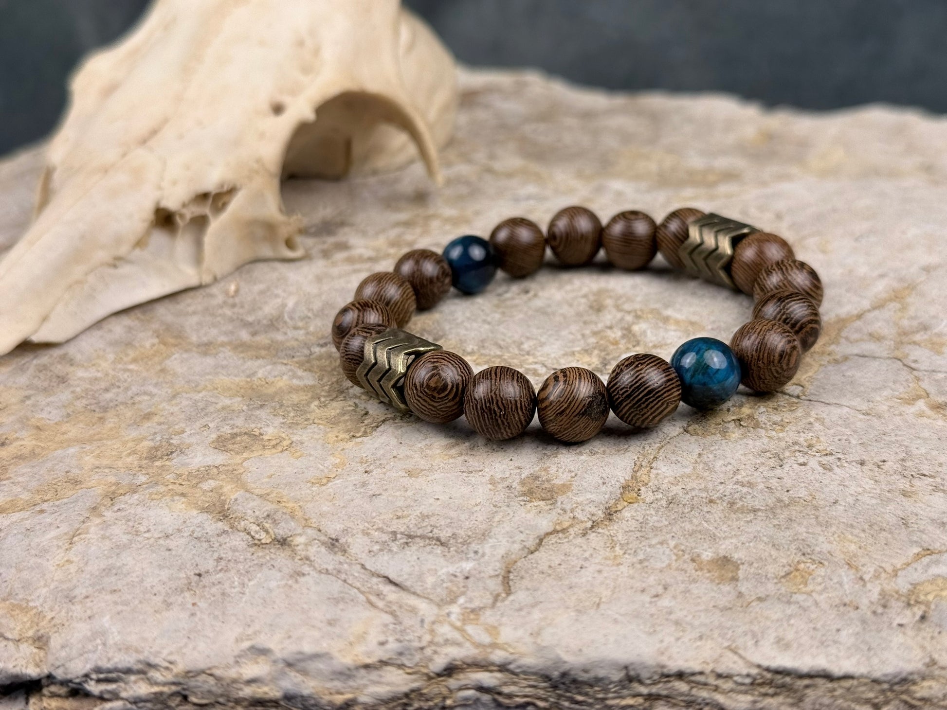 Blaues Tigerauge-Armband – Mit Antik-Gold & Holz | Nordblick