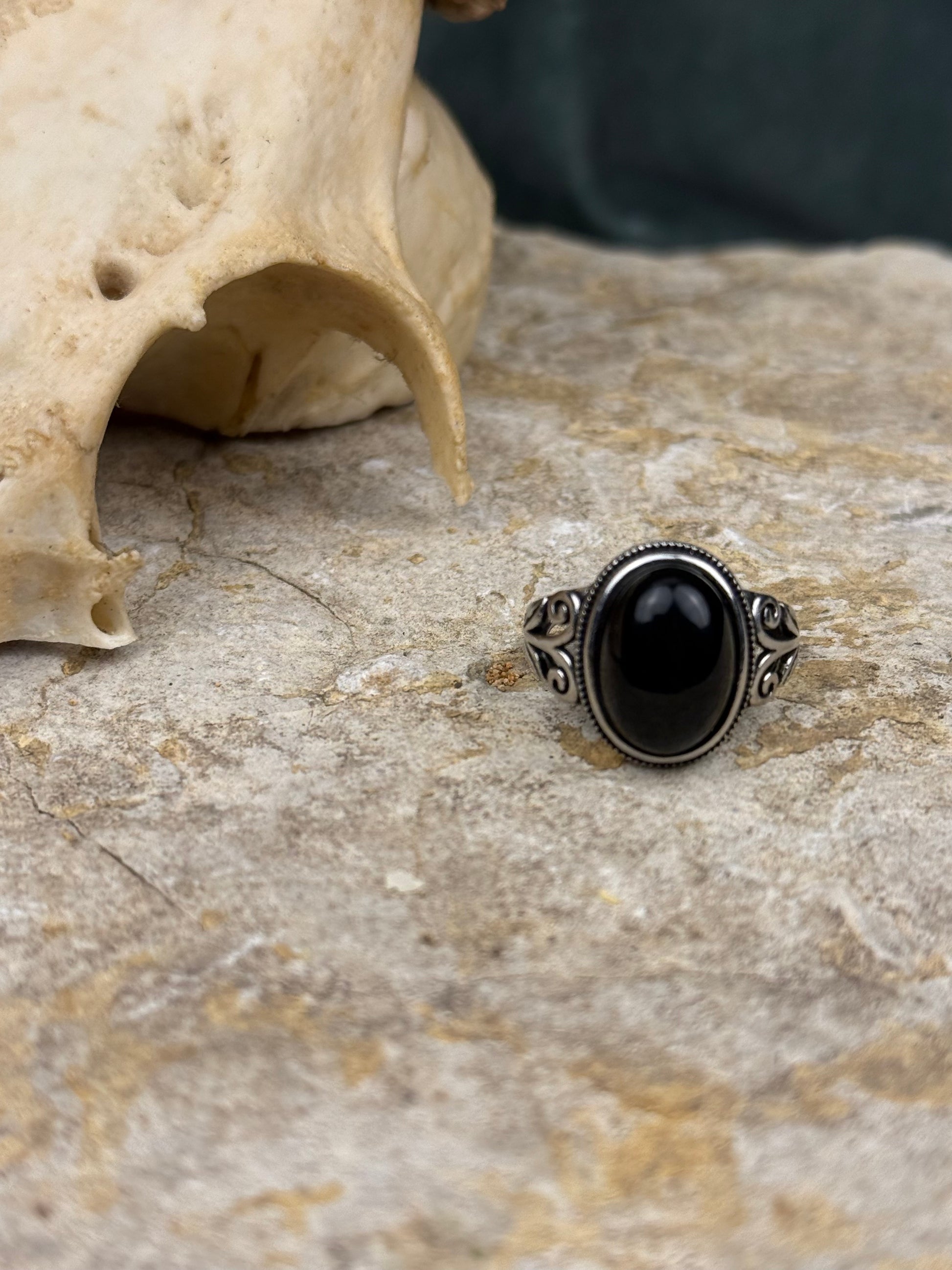Ein ausdrucksstarker Ring, der die geheimnisvolle Tiefe des Obsidians mit einer kunstvoll gearbeiteten Fassung verbindet. Der tiefschwarze Stein symbolisiert Schutz, Klarheit und innere Stärke – ein zeitloses Schmuckstück mit besonderer Bedeutung.