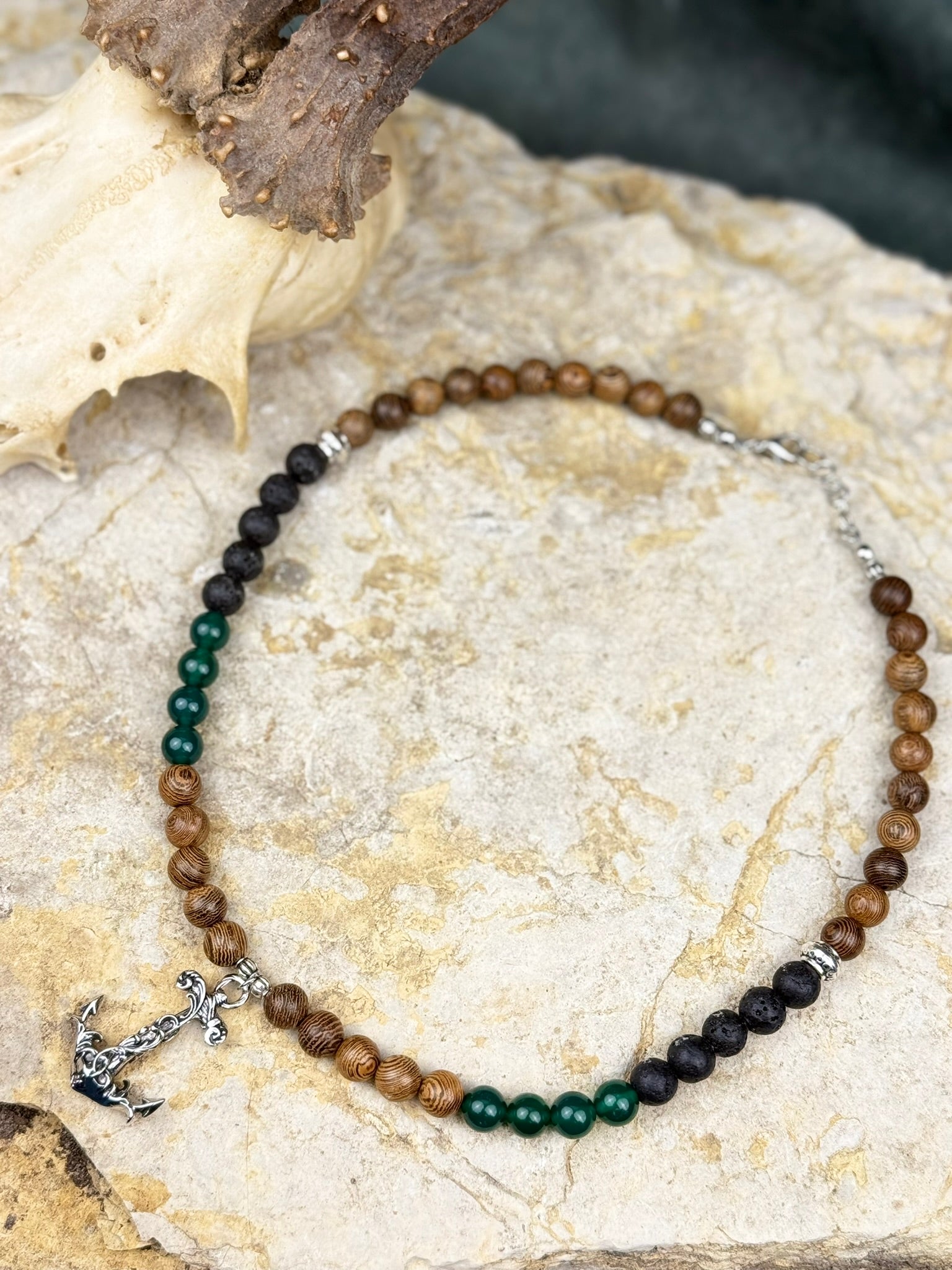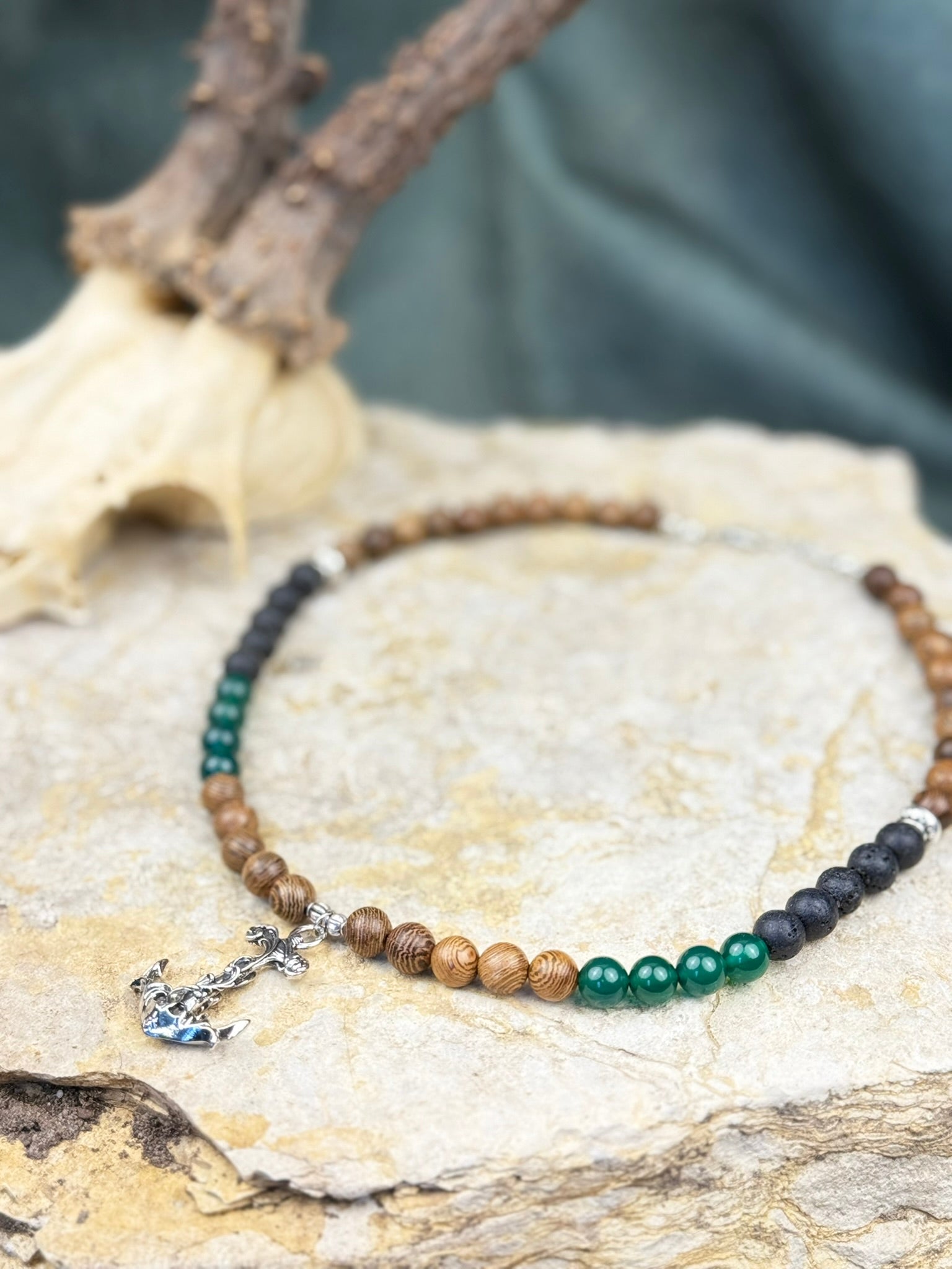 Seewächter der Grünen Tiefe – Piratenkette mit Lavastein & grünem Achat